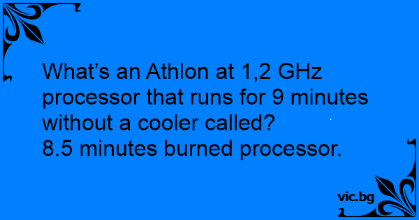 What’s an Athlon at 1,2 GHz processor that runs for 9 minutes without a cooler called?