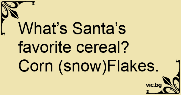What’s Santa’s favorite cereal? Corn (snow)Flakes.