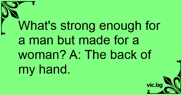 What's strong enough for a man but made for a woman? A: The back of my hand.