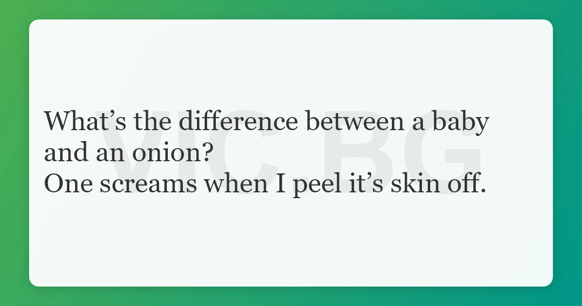 What’s the difference between a baby and an onion? One screams when I peel it’s skin off.