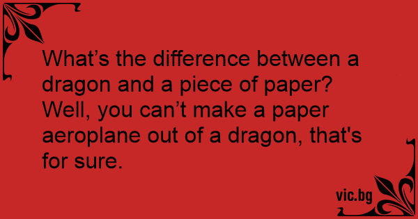 What’s the difference between a dragon and a piece of paper? Well, you can’t make a paper aeroplane out of a dragon, that's for sure.