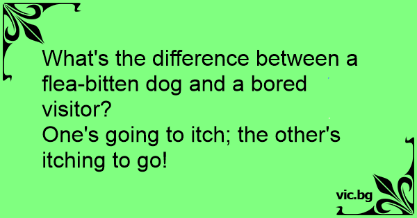 What's the difference between a flea-bitten dog and a bored visitor?<br />One's going to itch; the other's itching to go!