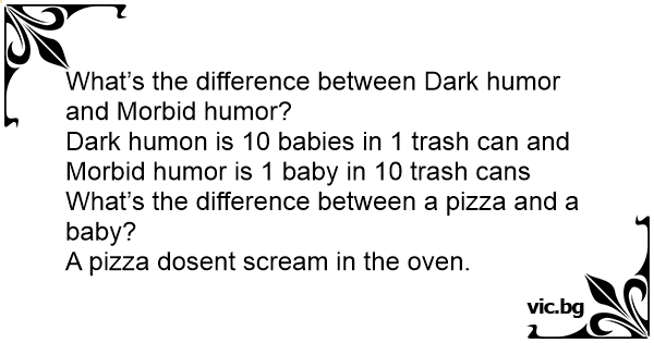 Dark humon is 10 babies in 1 trash can and Morbid humor is 1 baby in 10 trash cans