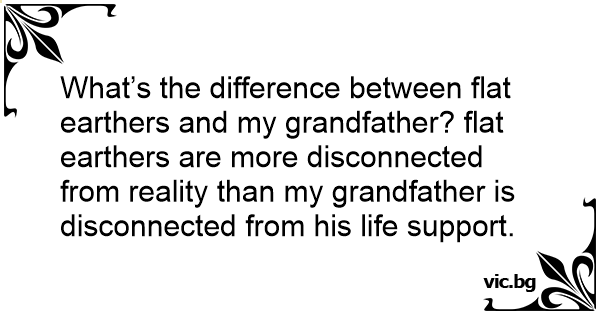 What’s the difference between flat earthers and my grandfather? flat earthers are more disconnected from reality than my grandfather is disconnected from his life support.