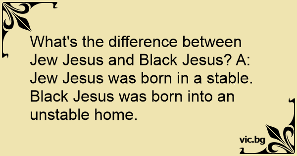 What's the difference between Jew Jesus and Black Jesus? A: Jew Jesus was born in a stable. Black Jesus was born into an unstable home.