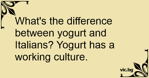 What's the difference between yogurt and Italians? Yogurt has a working culture.