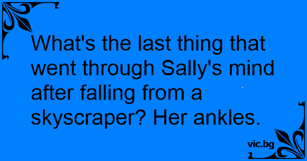 What's the last thing that went through Sally's mind after falling from a skyscraper? Her ankles.