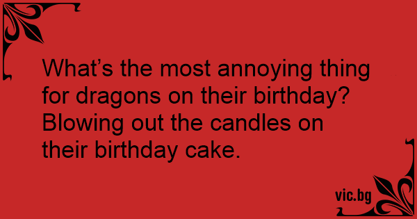 What’s the most annoying thing for dragons on their birthday? Blowing out the candles on their birthday cake.
