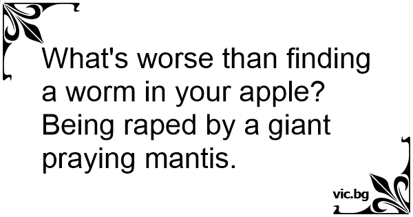 What's worse than finding a worm in your apple? Being rареd by a giant praying mantis.