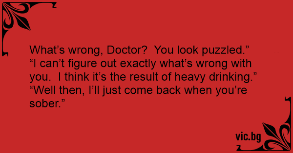 “I can’t figure out exactly what’s wrong with you. I think it’s the result of heavy drinking.”