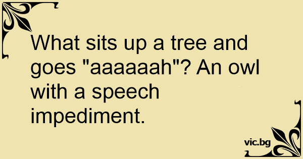 What sits up a tree and goes "aaaaaah"? An owl with a speech impediment.