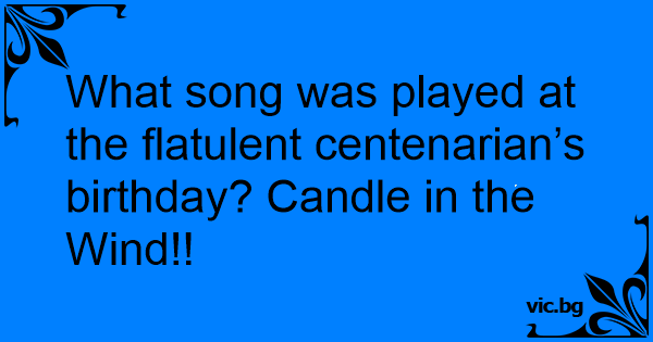 What song was played at the flatulent centenarian’s birthday? Candle in the Wind!!