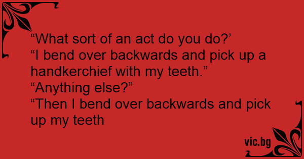 “I bend over backwards and pick up a handkerchief with my teeth.”