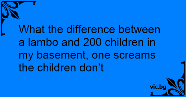 What the difference between a lambo and 200 children in my basement, one screams the children don’t