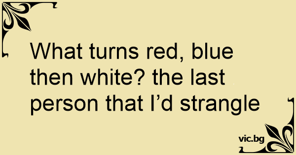 What turns red, blue then white? the last person that I’d strangle