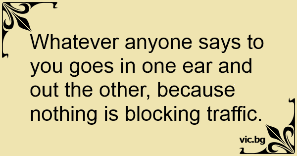 Whatever anyone says to you goes in one ear and out the other, because nothing is blocking traffic.