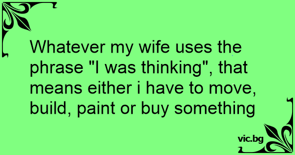 Whatever my wife uses the phrase "I was thinking", that means either i have to move, build, paint or buy something
