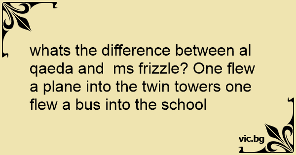 whats the difference between al qaeda and ms frizzle? One flew a plane into the twin towers one flew a bus into the school