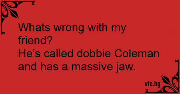 Whats wrong with my friend?<br />He’s called dobbie Coleman and has a massive jaw.