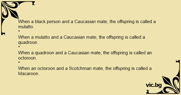 When an octoroon and a Scotchman mate, the offspring is called a Macaroon.