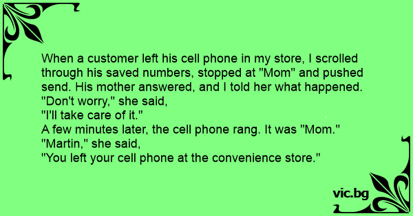 When a customer left his cell phone in my store, I scrolled through his saved numbers, stopped at "Mom" and pushed send. His mother answered, and I told her what happened.