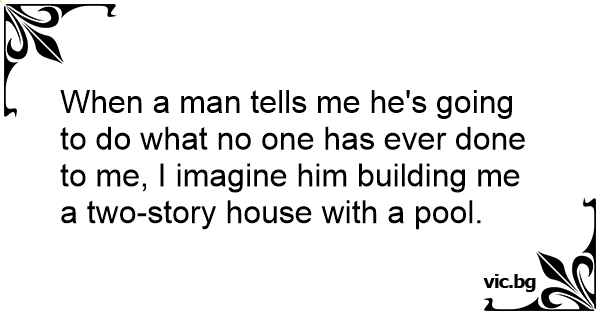 When a man tells me he's going to do what no one has ever done to me, I imagine him building me a two-story house with a pool.