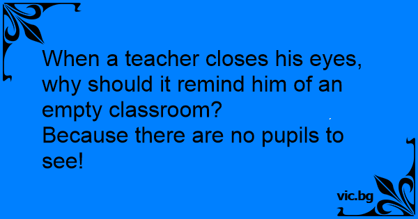 When a teacher closes his eyes, why should it remind him of an empty classroom? Because there are no pupils to see!