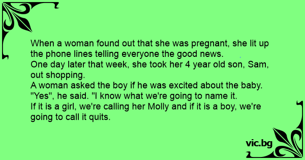 If it is a girl, we're calling her Molly and if it is a boy, we're going to call it quits.
