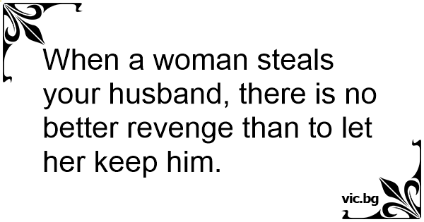 When a woman steals your husband, there is no better revenge than to let her keep him.