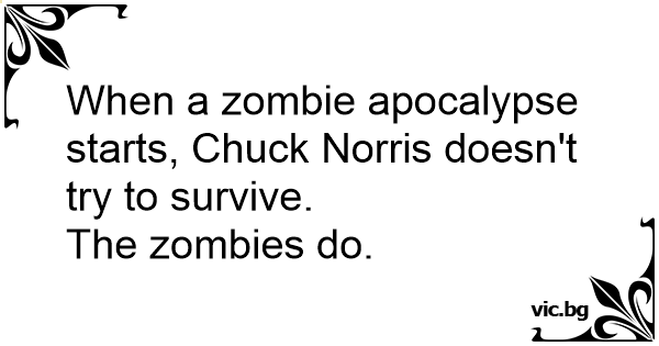 When a zombie apocalypse starts, Chuck Norris doesn't try to survive.