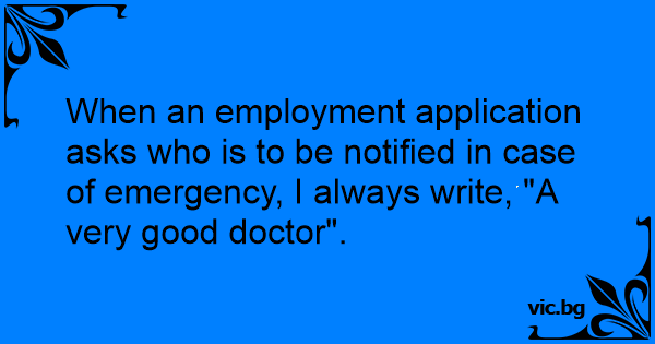 When an employment application asks who is to be notified in case of emergency, I always write, "A very good doctor".