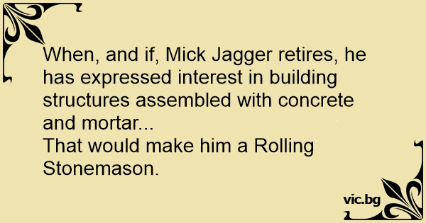When, and if, Мiск Jagger retires, he has expressed interest in building structures assembled with concrete and mortar...