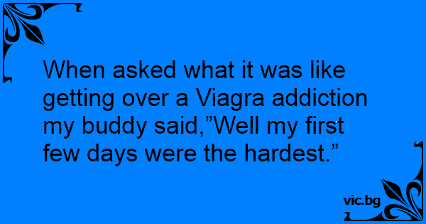 When asked what it was like getting over a Viаgrа addiction my buddy said,”Well my first few days were the hardest.”