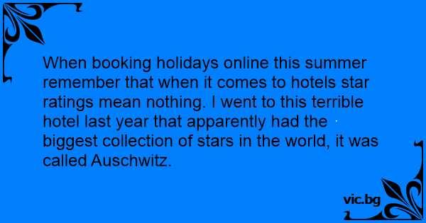 When booking holidays online this summer remember that when it comes to hotels star ratings mean nothing. I went to this terrible hotel last year that apparently had the biggest collection of stars in the world, it was called Auschwitz.