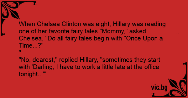 When Chelsea Clinton was eight, Hillary was reading one of her favorite fairy tales."Mommy," asked Chelsea, "Do all fairy tales begin with "Once Upon a Time...?"