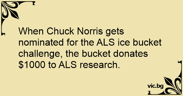When Chuck Norris gets nominated for the ALS ice bucket challenge, the bucket donates $1000 to ALS research.