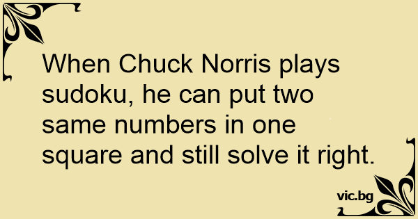 When Chuck Norris plays sudoku, he can put two same numbers in one square and still solve it right.