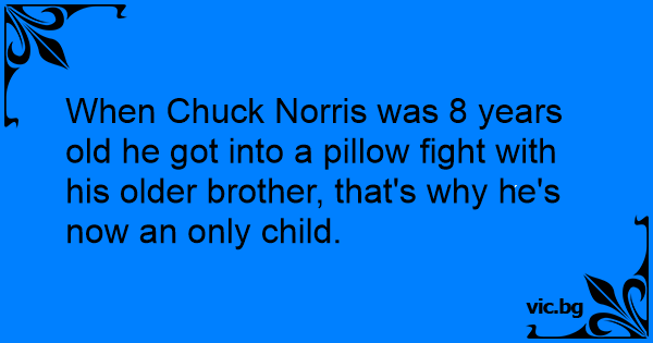 When Chuck Norris was 8 years old he got into a pillow fight with his older brother, that's why he's now an only child.