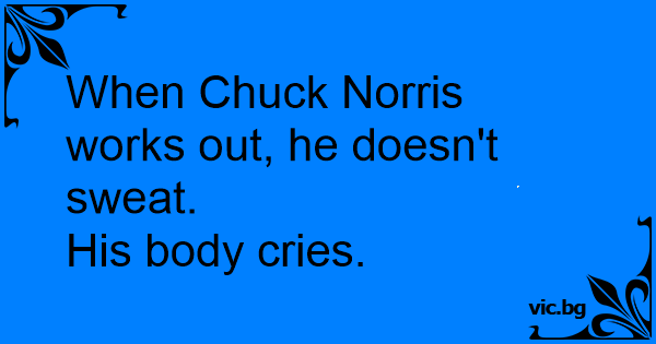 When Chuck Norris works out, he doesn't sweat.His body cries. 25 0 0 Office and Work Jokes Chuck Norris Jokes Fitness jokes