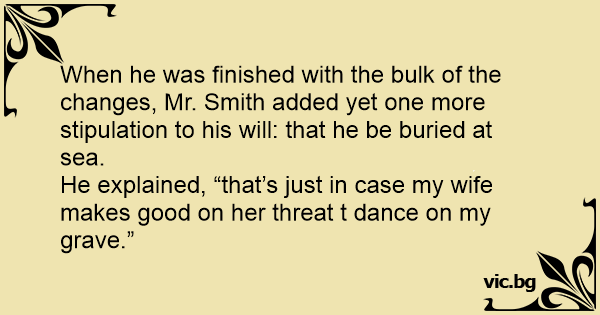He explained, “that’s just in case my wife makes good on her threat t dance on my grave.”