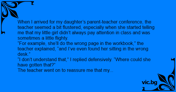 When I arrived for my daughter’s parent-teacher conference, the teacher seemed a bit flustered, especially when she started telling me that my little girl didn’t always pay attention in class and was sometimes a little flighty.