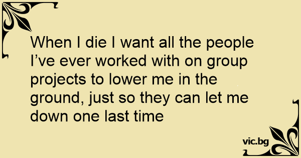 When I die I want all the people I’ve ever worked with on group projects to lower me in the ground, just so they can let me down one last time