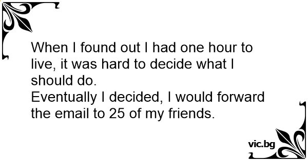 When I found out I had one hour to live, it was hard to decide what I should do.