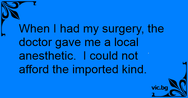 When I had my surgery, the doctor gave me a local anesthetic. I could not afford the imported kind.