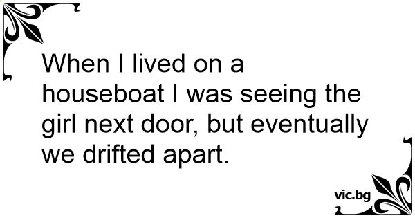 When I lived on a houseboat I was seeing the girl next door, but eventually we drifted apart.