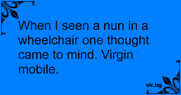 When I seen a nun in a wheelchair one thought came to mind. Virgin mobile.
