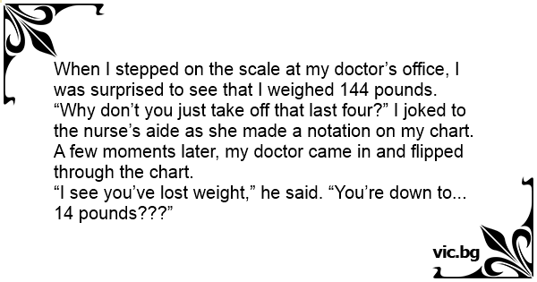 “I see you’ve lost weight,” he said. “You’re down to... 14 pounds???”