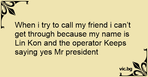When i try to call my friend i can’t get through because my name is Lin Kon and the operator Keeps saying yes Mr president