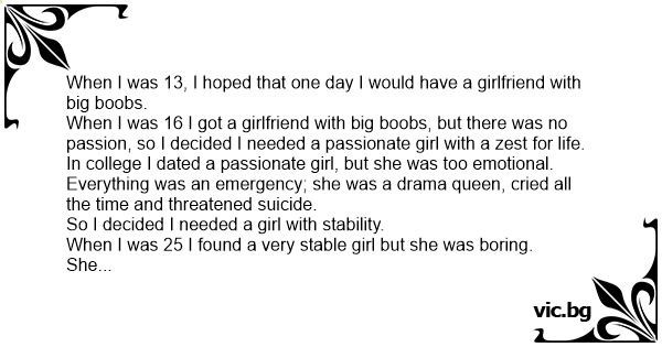 When I was 13, I hoped that one day I would have a girlfriend with big воовs.