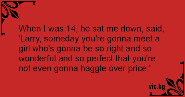 When I was 14, he sat me down, said, 'Larry, someday you're gonna meet a girl who's gonna be so right and so wonderful and so perfect that you're not even gonna haggle over price.'